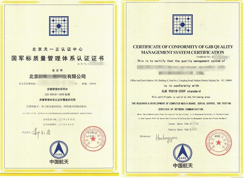 什么是GJB 9001C-2017質(zhì)量管理體系? ◆GJB 9001C-2017標(biāo)準(zhǔn)是結(jié)合了多年來軍工質(zhì)量管理體系認(rèn)證工作實踐的基礎(chǔ)上進(jìn)行的修訂,它借鑒了軍工質(zhì)量管理多年形成的有效地管理手段和管理經(jīng)驗,注重與相關(guān)國家軍用標(biāo)準(zhǔn)的協(xié)調(diào),大量引用質(zhì)量管理和質(zhì)量控制方面的國家軍用標(biāo)準(zhǔn),強調(diào)了軍品的“六大特性”要求。其標(biāo)準(zhǔn)的主要特點是:突出對設(shè)計開發(fā)控制;突出關(guān)鍵過程控制;突出滿足顧客(軍方)的要求。 ◆中國人民解放軍總裝備部2017年5月18日發(fā)布了新版國家軍用標(biāo)準(zhǔn)GJB 9001C-2017《質(zhì)量管理體系要求》,代替了原GJB 9001B-2009標(biāo)準(zhǔn),新標(biāo)準(zhǔn)于2017年7月1日起實施。 沒有GJB 9001C-2017證書將不能與軍方合作! ◆《中國人民解放軍裝備條例》第143條規(guī)定“質(zhì)量體系評定不合格的單位不能承擔(dān)裝備科研、生產(chǎn)和維修任務(wù)”。 認(rèn)證GJB 9001C-2017需要多長時間? ◆如公司已運行GJB 9001C-2017標(biāo)準(zhǔn)3個月以上,認(rèn)證GJB 9001C-2017需要30個工作日。(認(rèn)證時間根據(jù)企業(yè)具體條件不同而有所不同,詳情請咨詢?nèi)鸷托耪\專業(yè)顧問:64439282) 企業(yè)為什么需要聘請專業(yè)的咨詢顧問? ◆幫助企業(yè)建立符合GJB 9001C-2017標(biāo)準(zhǔn)的管理體系,指導(dǎo)企業(yè)編寫體系文件,認(rèn)證前對公司各崗位員工進(jìn)行應(yīng)答技巧培訓(xùn),為正式評審做好充分準(zhǔn)備,最終保證企業(yè)順利取得GJB 9001C-2017證書 ◆提高和改善組織的管理水平,增加知名度; ◆提高和保證軍工產(chǎn)品的質(zhì)量水平,有效降低質(zhì)量事故或不良事件的風(fēng)險,獲取更大的經(jīng)濟效益; ◆為獲得“武器裝備科研生產(chǎn)許可證”和相關(guān)軍工資質(zhì)打下良好基礎(chǔ); ◆取得進(jìn)入軍工市場的通行證,有利于增強競爭力,提高市場占有率; ◆提高員工的責(zé)任感和榮譽感。 申請GJB 9001C-2017的條件是什么? ◆申請單位必須已向軍方提供過產(chǎn)品,且軍方代表室能對提供的產(chǎn)品進(jìn)行評價,按GJB 9001C-2017標(biāo)準(zhǔn)建立質(zhì)量管理體系,運行3個月且進(jìn)行了內(nèi)審和管理評審。