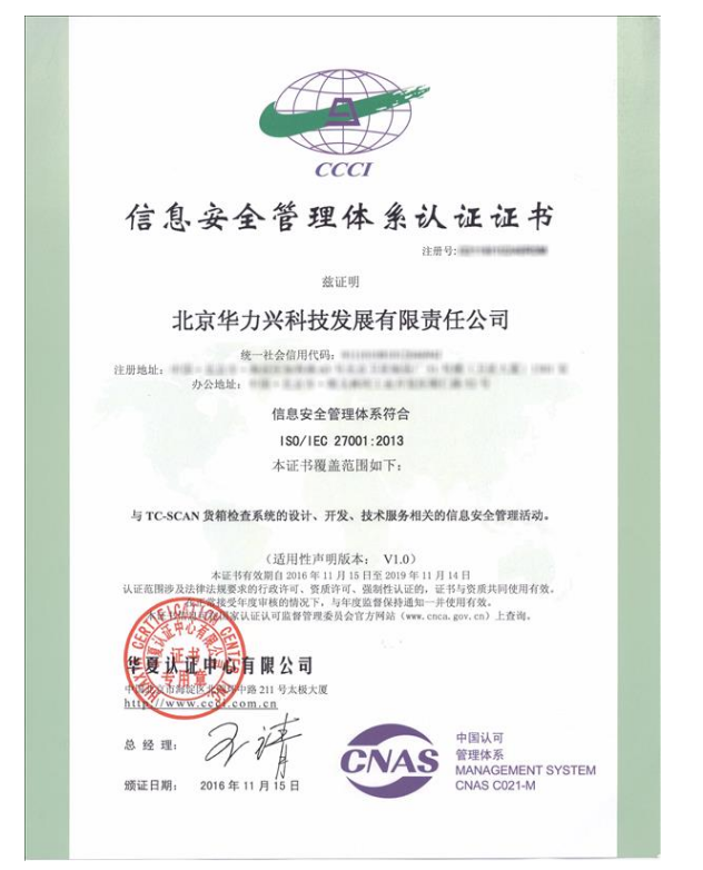 北京華力興科技發(fā)展有限責(zé)任公司(HLX),專業(yè)致力于研究、生產(chǎn)大型透視檢查設(shè)備。由同方 威視技術(shù)股份有限公司(NUCTECH)和清華大學(xué)核能技術(shù)設(shè)計(jì)研究院(INET)強(qiáng)強(qiáng)聯(lián)合打造的華力興,如今發(fā)展成為一家集研發(fā)、設(shè)計(jì)、制造、工程、服務(wù)于一體的具有中國(guó)自主知識(shí)產(chǎn)權(quán)的世界知名貨物/車輛安全檢查系統(tǒng)供貨廠商。 依托于清華核研院在輻射物理、核探測(cè)技術(shù)方面五十年的經(jīng)驗(yàn),華力興以數(shù)字輻射成像技術(shù)為核心研發(fā)出的TC-SCAN貨物/車輛安全檢查系統(tǒng)、TC-SCAN工業(yè)核測(cè)控系統(tǒng)和智能綜合安全管理系統(tǒng),可根據(jù)不同用戶的需求,為客戶量身定制世界先進(jìn)水平的非接觸式測(cè)量、控制、檢查裝備和綜合安全管理解決方案。 同方威視技術(shù)股份有限公司攜北京華力興科技發(fā)展有限責(zé)任公司在集裝箱檢查系統(tǒng)領(lǐng)域的國(guó)際市場(chǎng)具有強(qiáng)大競(jìng)爭(zhēng)力,占據(jù)65%的市場(chǎng)份額;同時(shí),北京華力興科技發(fā)展有限責(zé)任公司結(jié)合自身產(chǎn)品的技術(shù)特點(diǎn)和安檢領(lǐng)域的行業(yè)經(jīng)驗(yàn)在更多領(lǐng)域和行業(yè)開發(fā)生產(chǎn)出新的產(chǎn)品,如底盤檢查系統(tǒng)、手持爆炸物檢測(cè)系統(tǒng)、智能安防監(jiān)控系統(tǒng)等多種小型安檢設(shè)備,使公司產(chǎn)品種類更加豐富涉及領(lǐng)域更全面,為更多領(lǐng)域客戶的綜合安全管理提供前沿的技術(shù)和優(yōu)質(zhì)的服務(wù)。 企業(yè)順利通過(guò)信息安全管理體系ISO/IEC27001:2013 認(rèn)證 |