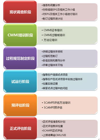本文由瑞和信誠(chéng)為您搜集整理,希望對(duì)您企業(yè)的發(fā)展有所幫助。如果您想了解更多有關(guān)于CMMI認(rèn)證,請(qǐng)聯(lián)系瑞和信誠(chéng)資深專業(yè)咨詢師:010-64439282。什么是CMMI認(rèn)證? CMMI的等級(jí) 2、已管理級(jí) 建立了基本的項(xiàng)目管理過程來跟蹤費(fèi)用、進(jìn)度和功能特性。制定了必要的過程紀(jì)律,能重復(fù)早先類似應(yīng)用項(xiàng)目取得的成功經(jīng)驗(yàn)。 3、已定義級(jí) 已將軟件管理和工程兩方面的過程文檔化、標(biāo)準(zhǔn)化,并綜合成該組織的標(biāo)準(zhǔn)軟件過程。所有項(xiàng)目均使用經(jīng)批準(zhǔn)、剪裁的標(biāo)準(zhǔn)軟件過程來開發(fā)和維護(hù)軟件,軟件產(chǎn)品的生產(chǎn)在整個(gè)軟件過程是可見的。 4、量化管理級(jí) 分析對(duì)軟件過程和產(chǎn)品質(zhì)量的詳細(xì)度量數(shù)據(jù),對(duì)軟件過程和產(chǎn)品都有定量的理解與控制。管理有一個(gè)作出結(jié)論的客觀依據(jù),管理能夠在定量的范圍內(nèi)預(yù)測(cè)性能。 5、優(yōu)化管理級(jí) 過程的量化反饋和先進(jìn)的新思想、新技術(shù)促使過程持續(xù)不斷改進(jìn)。每個(gè)等級(jí)都被分解為過程域,特殊目標(biāo)和特殊實(shí)踐,通用目標(biāo)、通用實(shí)踐和共同特性:每個(gè)等級(jí)都有幾個(gè)過程區(qū)域組成,這幾個(gè)過程域共同形成一種軟件過程能力。每個(gè)過程域,都有一些特殊目標(biāo)和通用目標(biāo),通過相應(yīng)的特殊實(shí)踐和通用實(shí)踐來實(shí)現(xiàn)這些目標(biāo)。當(dāng)一個(gè)過程域的所有特殊實(shí)踐和通用實(shí)踐都按要求得到實(shí)施,就能實(shí)現(xiàn)該過程域的目標(biāo)。 為什么企業(yè)需要CMMI認(rèn)證?1、作為一個(gè)參照模型與公司現(xiàn)有的模型比較,了解兩者的差距; 2、規(guī)范軟件開發(fā)過程及其管理; 3、幫助企業(yè)進(jìn)行內(nèi)部的過程改進(jìn),這是CMMI最有特色的地方。 軟件過程的改進(jìn)和軟件過程能力的提高可以提高產(chǎn)品質(zhì)量、控制成本、提高勞動(dòng)生產(chǎn)率; 4、增加企業(yè)的國(guó)際競(jìng)爭(zhēng)力; 5、可以降低軟件開發(fā)風(fēng)險(xiǎn)。 申請(qǐng)CMMI企業(yè)需要準(zhǔn)備哪些手續(xù)呢??CMMI認(rèn)證對(duì)于企業(yè)沒有硬性的要求,只要企業(yè)有愿望獲取CMMI3級(jí)證書,任何軟件開發(fā)或軟件服務(wù)的企業(yè)都有權(quán)力去申請(qǐng)CMMI3級(jí)的認(rèn)證,但是企業(yè)要獲得SEI的認(rèn)可,獲得CMMI證書,這個(gè)過程就需要企業(yè)按要求導(dǎo)入了CMMI3的模型,建立起CMMI3的管理模型與框架,最終符合CMMI3的要求。當(dāng)然這個(gè)過程就需要咨詢公司的協(xié)助將會(huì)更順利。這個(gè)CMMI認(rèn)證不需要其它企業(yè)資質(zhì)的支持。 申請(qǐng)CMMI認(rèn)證的流程